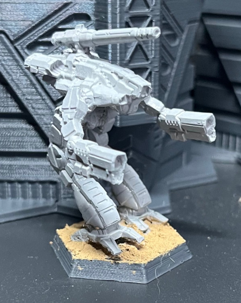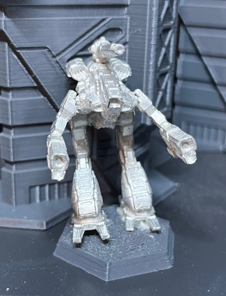 Here’s a tutorial that shows how I paint this scheme. The ‘Mech is IWM’s relatively recent “Classic” Marauder, 20-5216. Catalyst have been busy with new art and plastic miniatures for most of the unseen designs, and IWM produces these in metal as well. The looks of the new designs are much closer to the original designs than the Project Phoenix re-seen sculpts from the mid-2000s, which I never liked.