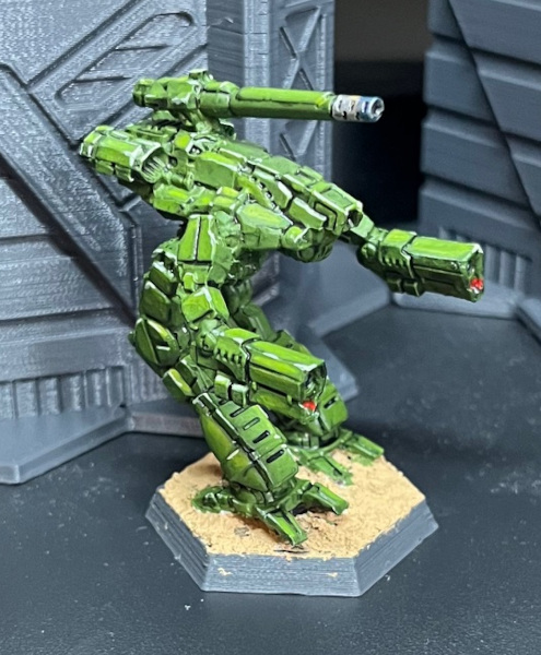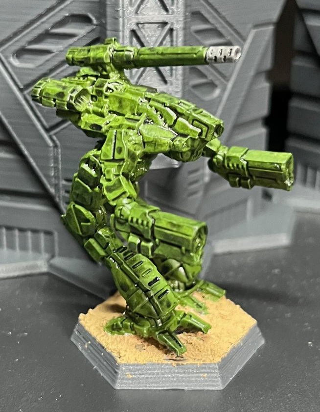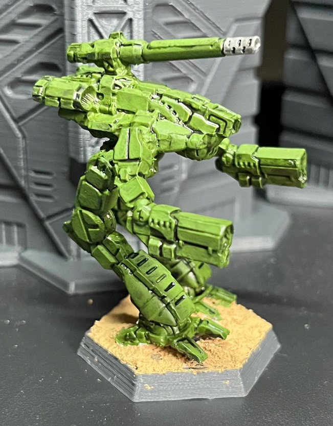 After trying various paint schemes throughout the last 3 decades, I’ve now settled on a straightforward green scheme for most of my Inner Sphere ‘Mechs. Green is suitable for at least the following units:
